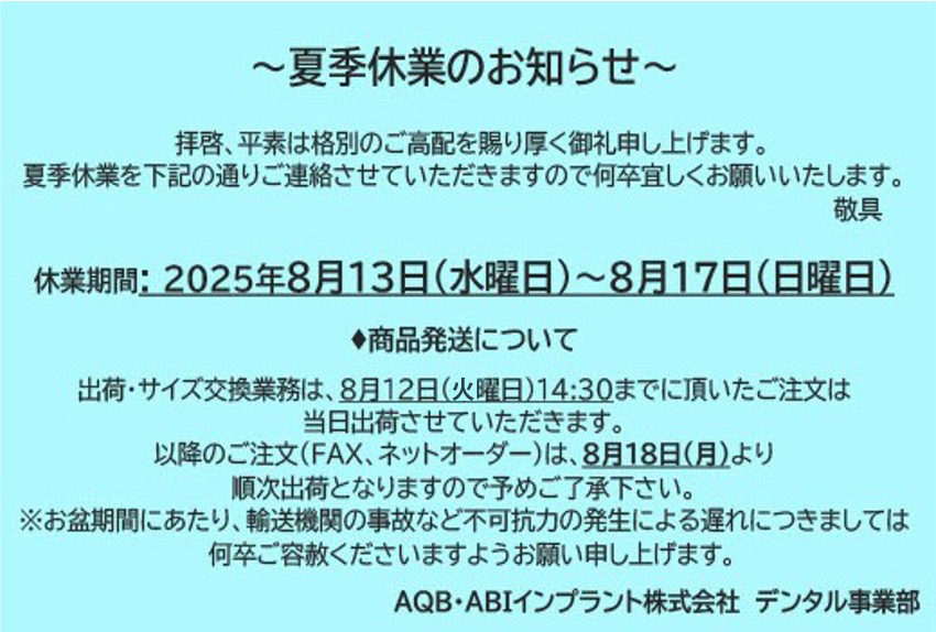 2025年夏季休暇(8月13日~17日)のお知らせ