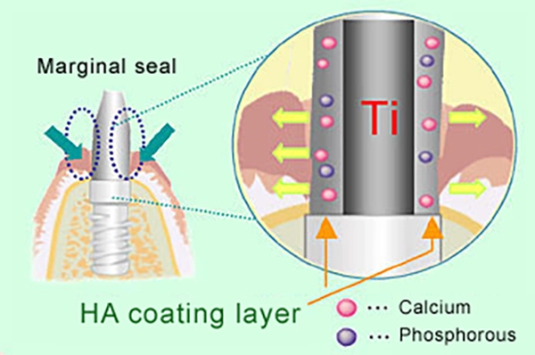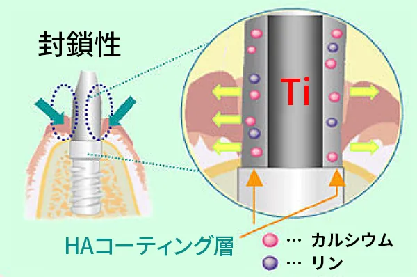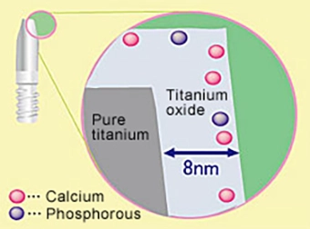 Caが酸化層にあるため、HAコーティングを行う際、基材の純チタンとの癒合も高めます。